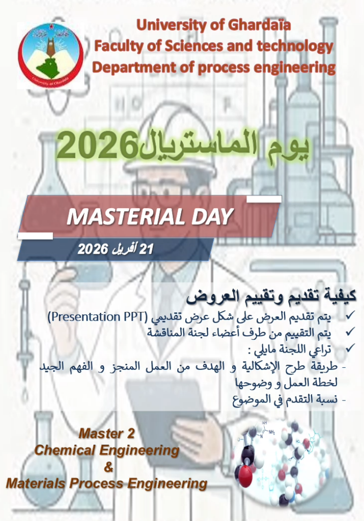 تنظم إدارة قسم هندسة الطرائق يوم الماستريال، والذي سيقام تحت عنوان “السنة الجامعية 2026/2025”.