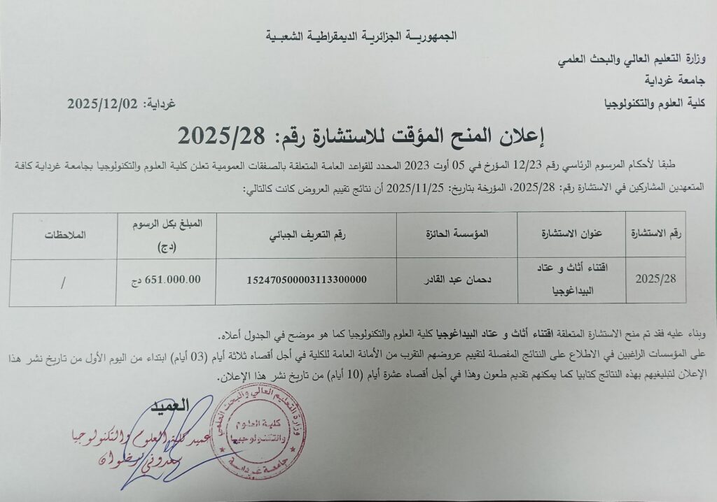 إعلان المنح المؤقت للاستشارة رقم 2025/28 15 ديسمبر 2025 الاستشارات 28 زيارة Oplus_16908288 شاركها Facebook Twitter LinkedIn